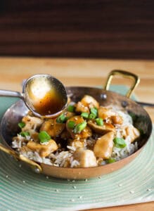 Once you have your oil heated you can toss in your chicken until cooked through. Then you add your veggies, stock and seasoning. While all that is cooking nicely, prepare your rice, and it will all be ready to devour! Simple ingredients are sure to make this a hit for the whole family, and it really couldn’t be easier to make!
